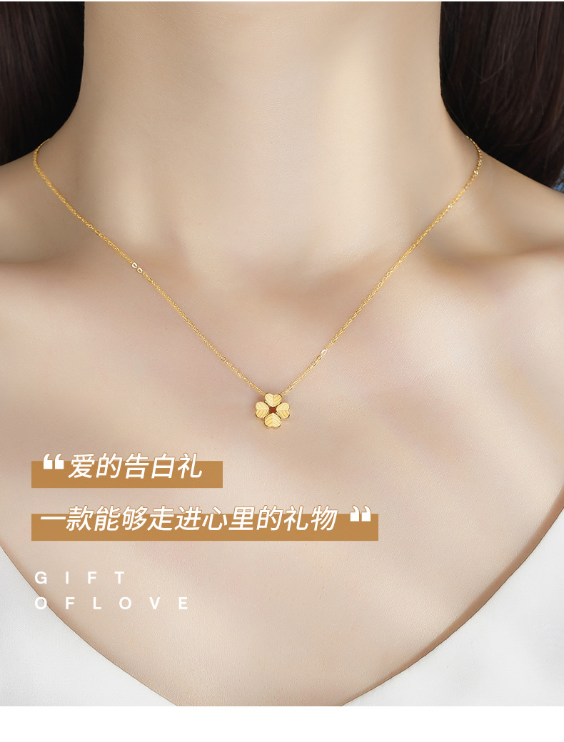 幸运四叶草足金999吊坠套链24k素金刻字万发纯金锁骨链黄金项链女