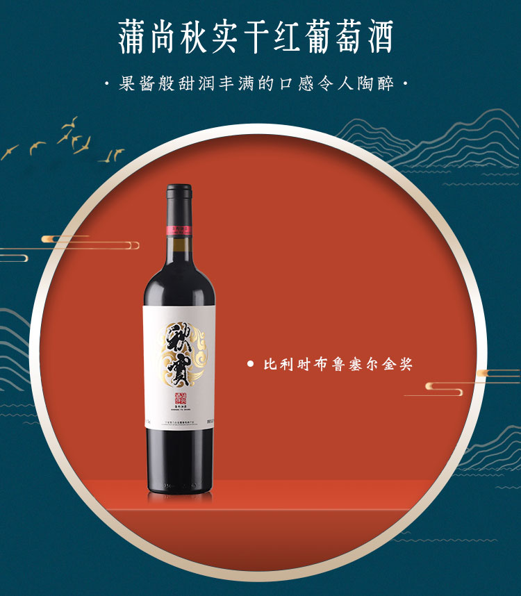 蒲尚酒庄秋实赤霞珠干红葡萄酒宁夏贺兰山东麓750ml整箱6支2017年